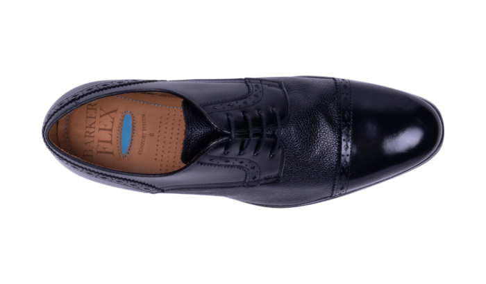 The Ashbourne Derby is the epitome of classic dress shoes. crafted to perfection with a touch of contemporary flair. Designed in England and handcrafted in our partner factory in Portugal. this stylish derby is the perfect choice for any formal occasion. The diamond punch detail adds a subtle yet elegant touch to the high shine leather. while the grain leather adds a rich and textured finish. The Blake stitched leather sole with rubber forepart ensures maximum durability and traction. while the full leather lining ensures breathability and comfort. The Ashbourne Derby also features a comfort leather insole with Sorbothane padding. providing shock absorption and reducing foot fatigue. so you can wear them all day with ease. Elevate your style and complete your formal look with the timeless elegance of the Ashbourne Derby.